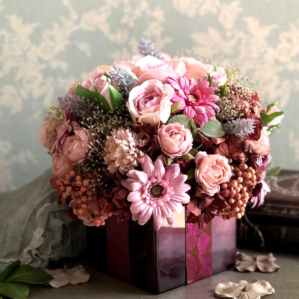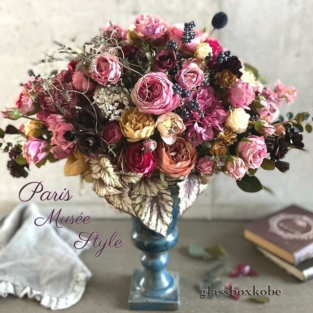 神戸市西区にある当教室では、『パリミュゼスタイル』という独自のスタイルのフラワーアレンジメントを体験できます。